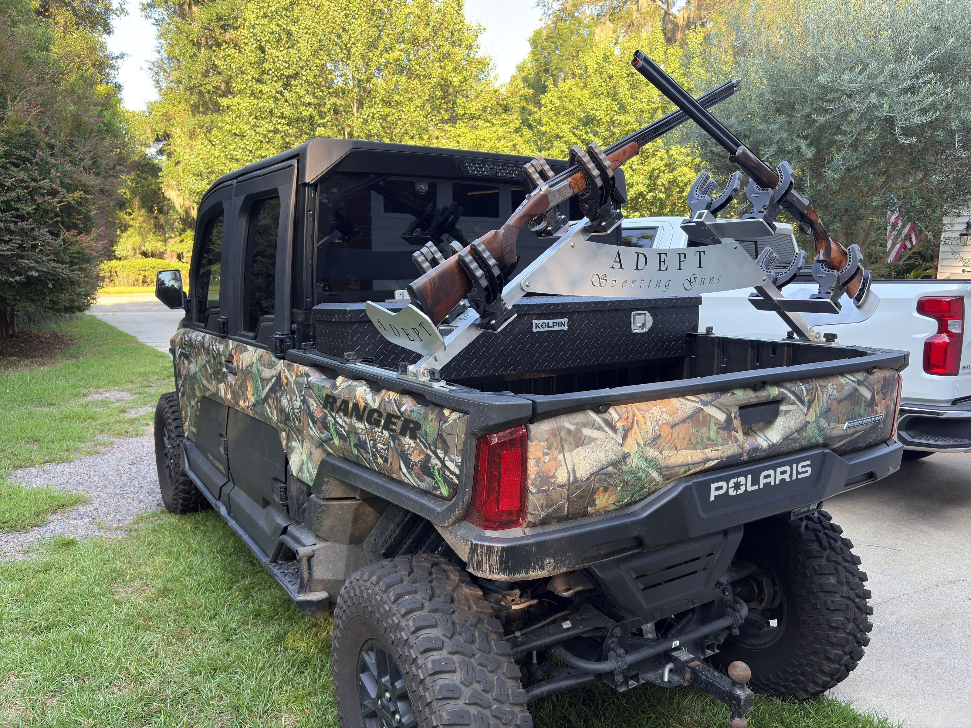 The best UTV / Side by Side gun rack for competition shooting, sporting clays, or hunting applications. We currently offer the gun racks for Polaris Ranger, Can Am Defender, CFMOTO and Kawasaki.